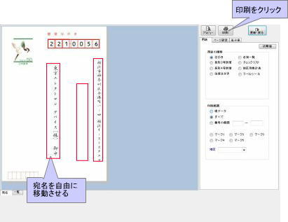 名簿の中から抽出して、はがきや封筒にまとめて印刷できます。