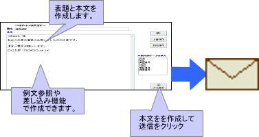 名簿を利用してメールの参照、差し込み、一括送信ができます。