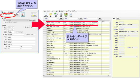 電話番号を入力すれば、電話帳データから住所、氏名を検索してきてくれるので、入力が簡単です(注)